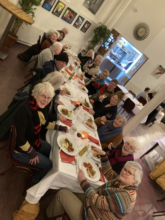 We gaan met iedereen die dat leuk vindt eenmaal per maand samen eten bij Eetcafe van de kook in de Oranjekerk. Vanwege het schema van de Oranjekerk is het een wisselende vrijdag geworden dus houdt de agenda op de website en de Stadsdorptoeter in de gaten om te zien wanneer we gaan. .